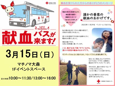 マチノマ大森に献血バスが来ます!